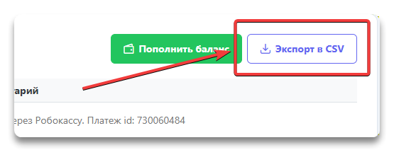 Список с взаиморасчетами можно сохранить в CSV файл по кнопке Экспорт в CSV.